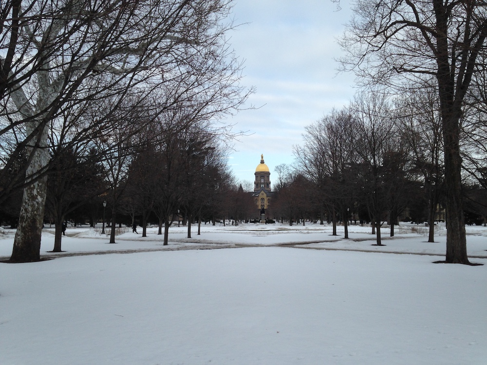 My trip to the US has began in a very bad way: the journey Durham – South Bend lasted 45 (you’re not misreading: forty-five) hours, a time during which I had the occasion to cultivate a crucial and painful virtue: patience (a vast amount of it). But once the plane did land in Chicago, and I entered the train to South Bend, all the stress and the fatigue of the long trip suddenly disappeared.