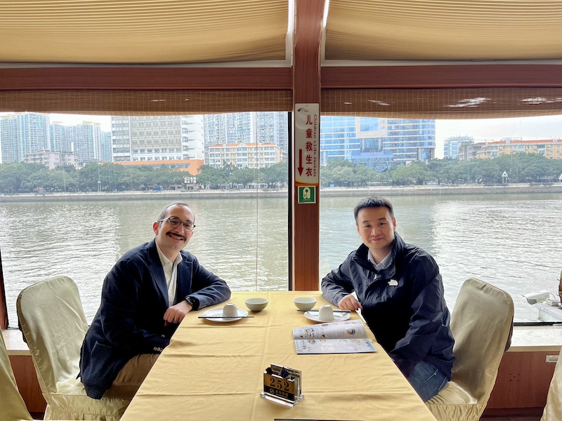 We made it to Guangzhou, in the deep south of China! The city is so different from Beijing: lots of people doing, selling, and eating stuff, plants and flowers that I only saw in the movies, and a marvellous river elegantly flowing through the city. It is incredibly vibrant and poetic! II had a fantastic time exploring Guangzhou with Qi Wang, a student of Thierry Meynard’s, who showed me the astonishing beauties of Canton. Needless to say, the food was amazing! While it’s somewhat similar to what we typically eat at Chinese restaurants in Europe (mostly Cantonese restaurants), it’s also distinct and sophisticated. Simply delicious!”